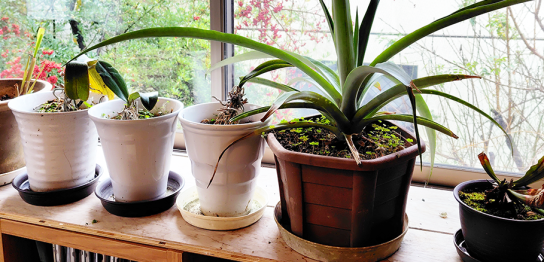 外気温が10℃以下になるのを目安に、寒さに弱い植物達を家の中に入れる。 玄関の中