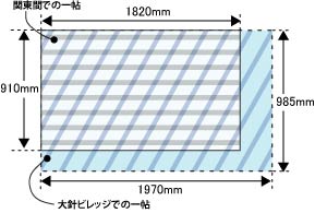日本人の体格の向上に伴い、私達は985ミリメートルモジュールを勧めたいと考えています。この場合、畳一帖分の広さは0.985×1.97=1.94平米同じ一帖でも関東間と比べ1.17倍の広さとなります。