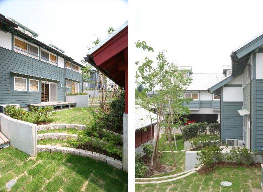 落ち着きと品格のある町並みに包まれたおよそ480坪の敷地に、5棟(9戸)で構成された環境共生賃貸住宅