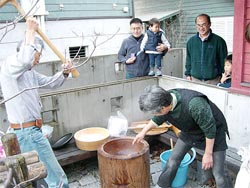 村の中央に大型雨水槽を設けました。庭木の散水に使うほか、夏の夕暮れ時には打ち水をして、自然の冷気を楽しみます。