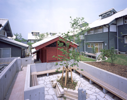 お互いの暮らし方を尊重しつつも、時に和気あいあいと村人たちが集い、語らいながら作り上げていく緩やかなコミュニティ。そのための中庭や多目的広場、花壇スペースを備えました。